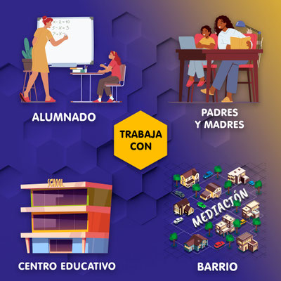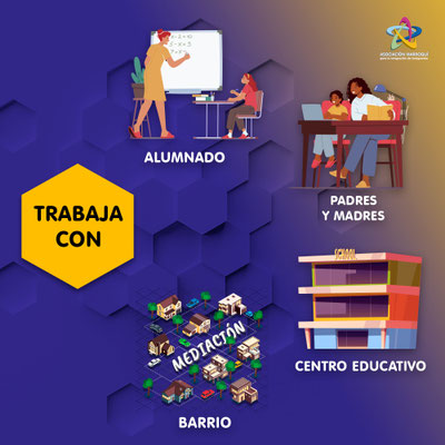 En la mediación intercultural ejercida en el ámbito educativo intervenimos en las relaciones entre el alumnado, el centro educativo y las familias. El objetivo principal es contribuir a mejorar la comunicación, la relación y la integración intercultural entre las personas que la integran más allá de las diferencias socioculturales.
